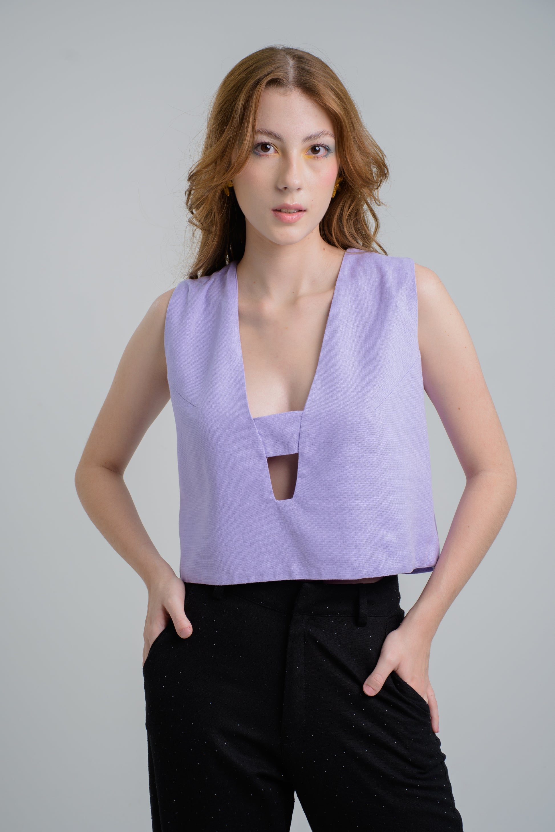 Nuestra Blusa Lino Luxor posee un corte limpio y estructurado, su diseño minimalista resalta por su escote en V con un recorte central único, que aporta un toque moderno y favorecedor, adaptándose a diferentes tipos de cuerpos.