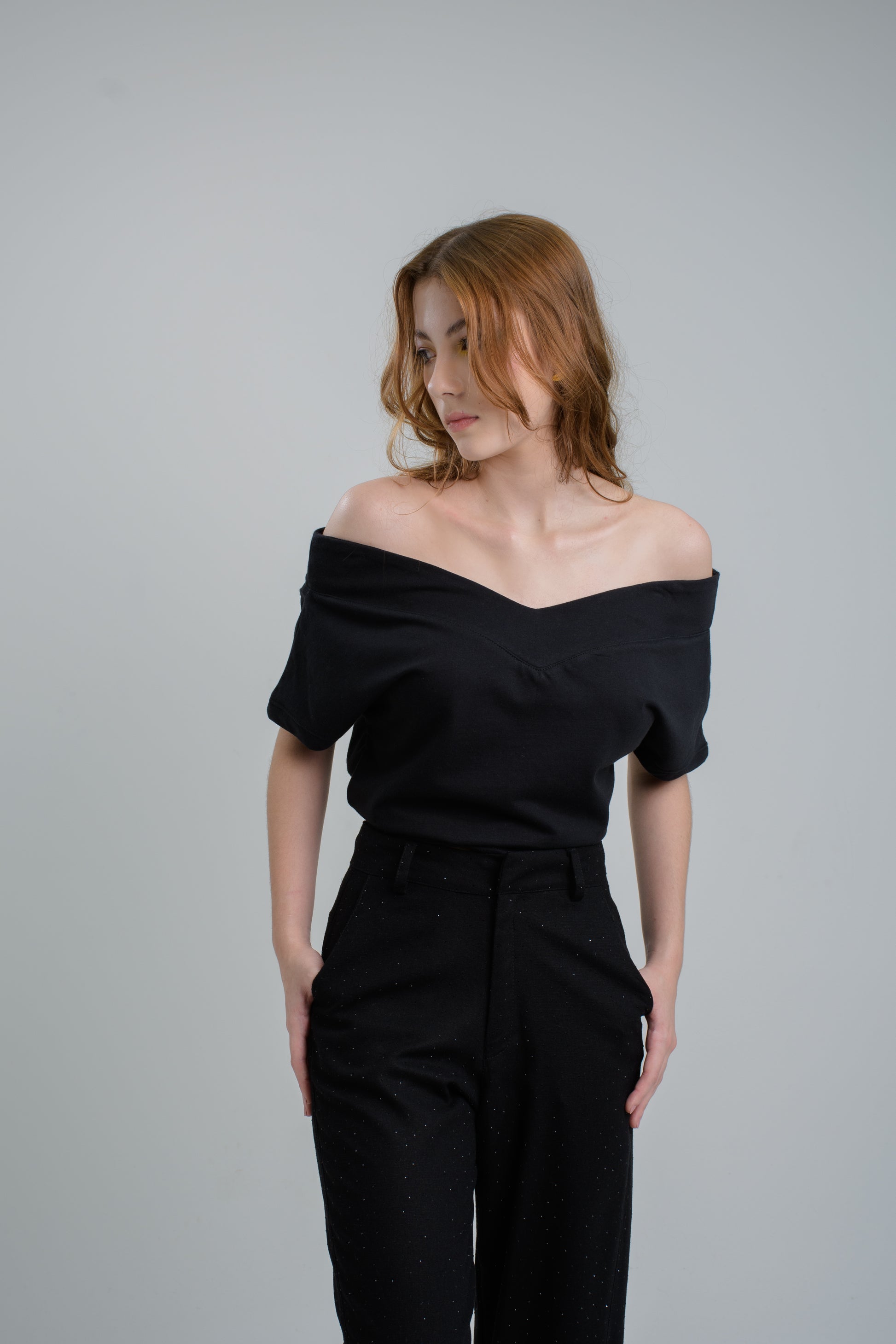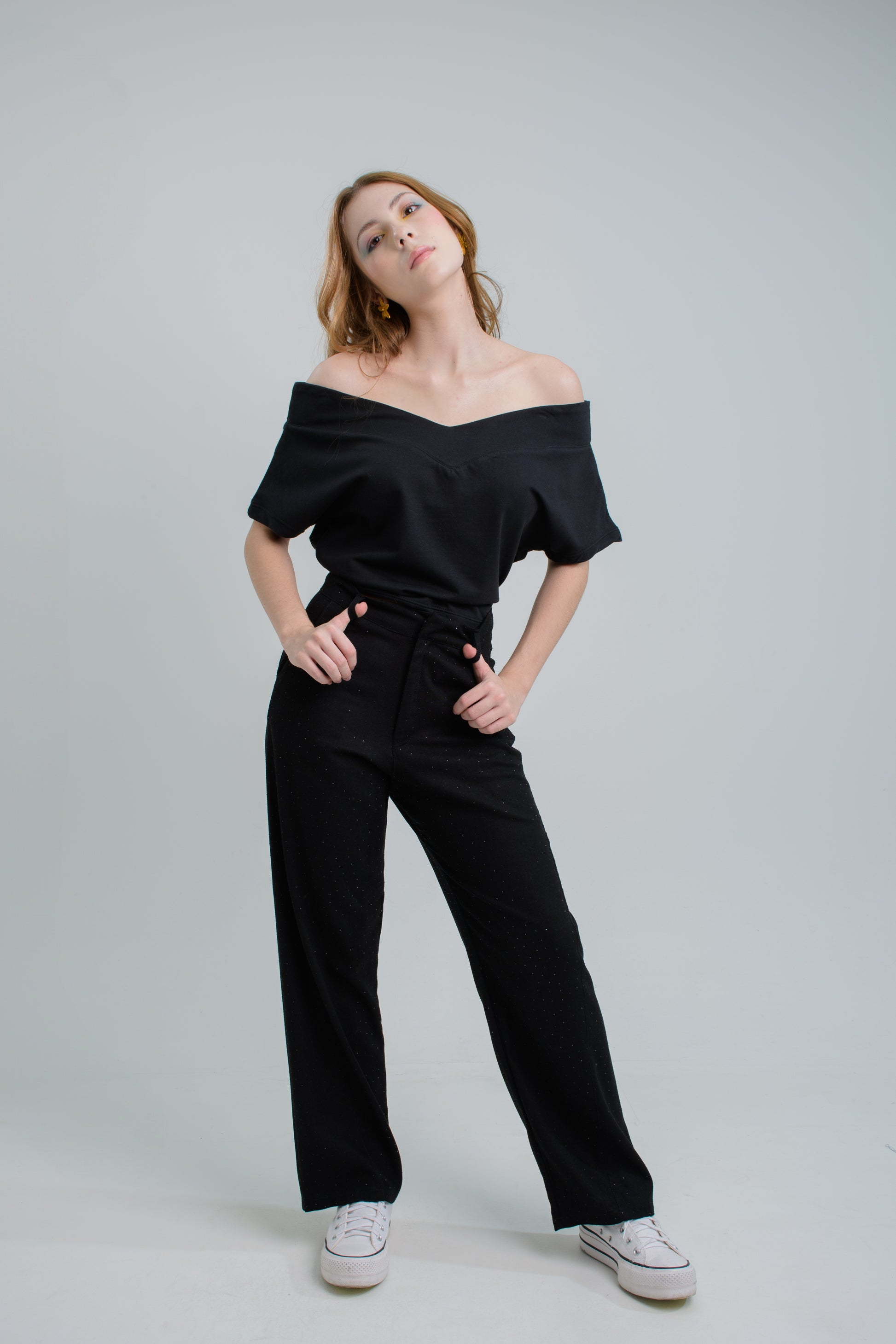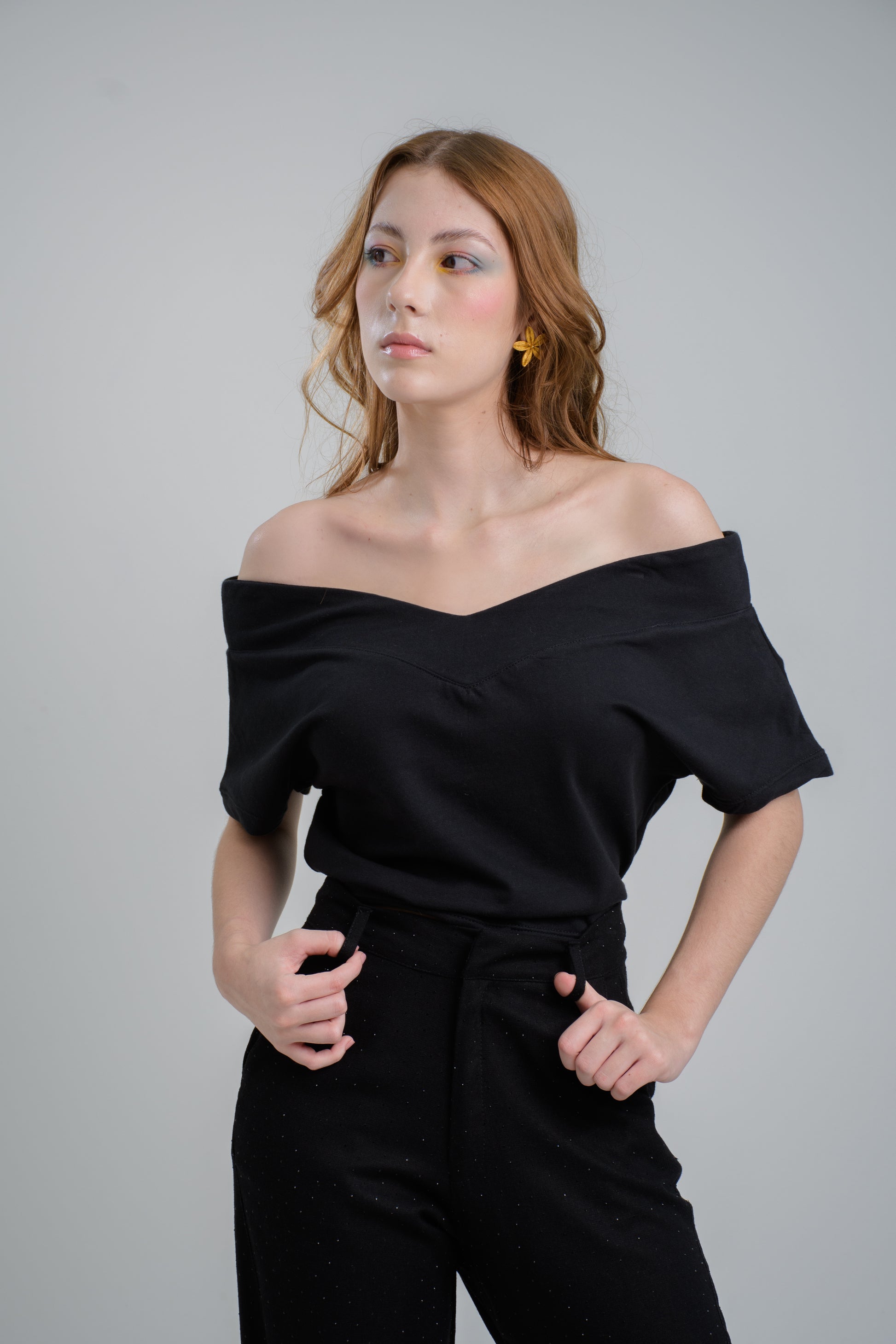 Nuestra Blusa Spalla Black es una de nuestras prendas favoritas de la cápsula 'Florecer'. Esta Blusa hombro caído, en algodón 100%, te ofrece versatilidad, elegancia y comodidad.
