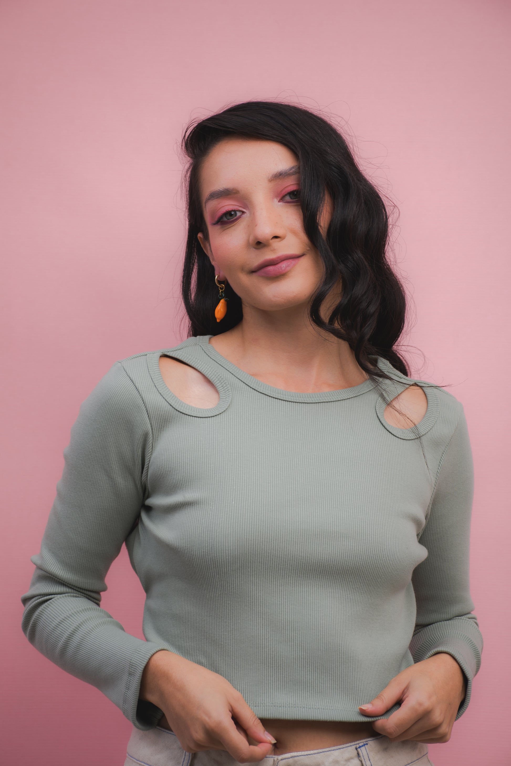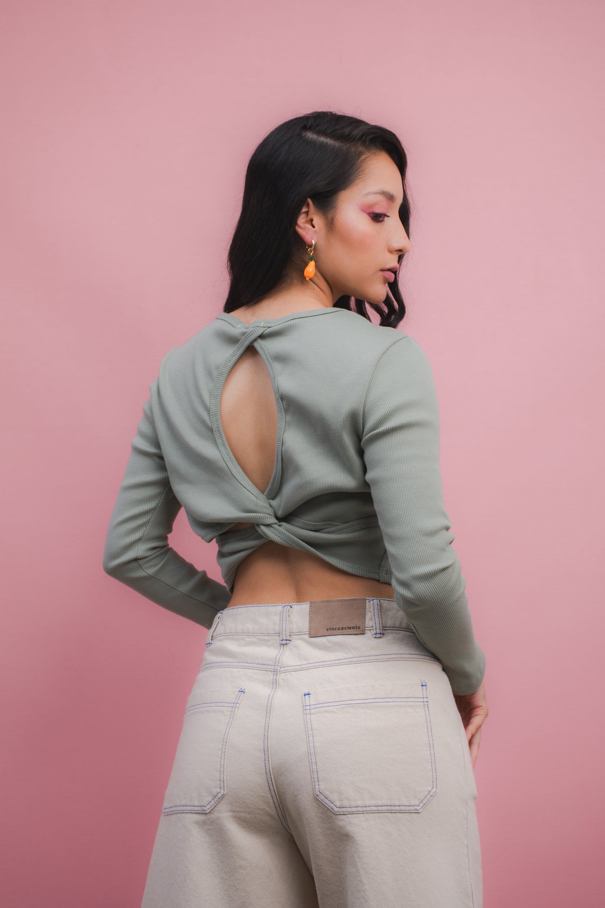 El fit corto acentúa la cintura, mientras la manga larga aporta contraste y balance visual. Una pieza pensada para acompañar el día a día con comodidad, frescura y carácter.